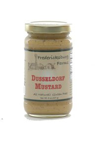 Fredericksburg Farms Dusseldorf Mustard Spoon over: Ham, turkey, pork chops Serve with: hot dogs, bratwurst, hamburgers, sandwiches, and soft pretzels Mix with: Potato Salad and deviled eggs Grill on: Pork or chicken 8 oz.